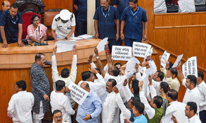 ବିଧାନସଭାରେ ଶାସକ-ବିରୋଧୀ ବିଧାୟକ ଧସ୍ତାଧସ୍ତି: ତାରା ବାହିନୀପତି ନିଲମ୍ବିତ