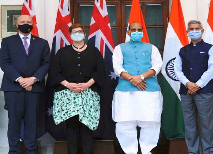 ପ୍ରତିରକ୍ଷା ମନ୍ତ୍ରୀ ରାଜନାଥ ସିଂ କହିଥିଲେ କି ଆମର ପ୍ରତିରକ୍ଷା ଏନଗେଜମେଣ୍ଟ ପ୍ଲାଟଫର୍ମର ପାରସ୍ପରିକ କାର୍ଯ୍ୟଦକ୍ଷତାରେ ଏକ ଉଲ୍ଲେଖନୀୟ ବୃଦ୍ଧି ଘଟିଛି | ଦ୍ୱିପାକ୍ଷିକ ଏବଂ ବହୁପକ୍ଷୀୟ କାର୍ଯ୍ୟରେ ମିଳିତ ବ୍ୟାୟାମ ମଧ୍ୟ ଆମର ଶକ୍ତିର ଜଟିଳତା ଏବଂ ସମନ୍ୱୟକୁ ବହୁଗୁଣିତ କରିଛି । ଏହାପୂର୍ବରୁ ଏକ ଟୁଇଟ୍ରେ ବୈଦେଶିକ ବ୍ୟାପାର ମନ୍ତ୍ରଣାଳୟ ମୁଖପାତ୍ର କହିଛନ୍ତି ଯେ ଭାରତ-ଅଷ୍ଟ୍ରେଲିଆ ୨+୨ ମନ୍ତ୍ରିସ୍ତରୀୟ କଥାବାର୍ତ୍ତା ପାଇଁ ବୈଦେଶିକ ବ୍ୟାପାର ମନ୍ତ୍ରୀ ଡ. ଏସ ଜୟଶଙ୍କର ଏବଂ ପ୍ରତିରକ୍ଷା ମନ୍ତ୍ରୀ ରାଜନାଥ ସିଂ ସେମାନଙ୍କ ଅଷ୍ଟ୍ରେଲୀୟ ପ୍ରତିପକ୍ଷ ବୈଦେଶିକ ବ୍ୟାପାର ମନ୍ତ୍ରୀ ମାରିସ ପାୟନେ ଏବଂ ଅଷ୍ଟ୍ରେଲିଆ ପ୍ରତିରକ୍ଷା ମନ୍ତ୍ରୀ ପିଟର ଡଟନଙ୍କୁ ଆହ୍ୱାନ କରିଛନ୍ତି। ସ୍ୱାଗତ ଏଜେଣ୍ଡାରେ ଦ୍ୱିପାକ୍ଷିକ, ଆଞ୍ଚଳିକ ଏବଂ ବିଶ୍ୱସ୍ତରୀୟ ପ୍ରସଙ୍ଗ ସାମିଲ ରହିଥିଲା।